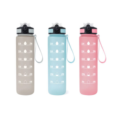 Motivación que refresca y acompaña. Botella deportiva motivacional. Botella de colores pastel en degradé bicolor con acabado frost. Tapa plástica