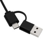 Adaptador HUB multipuerto. Entrada: 3 USB + 1 USB tipo C. Salida: 2 en 1 (USB y USB tipo C). Cable negro de conexión.