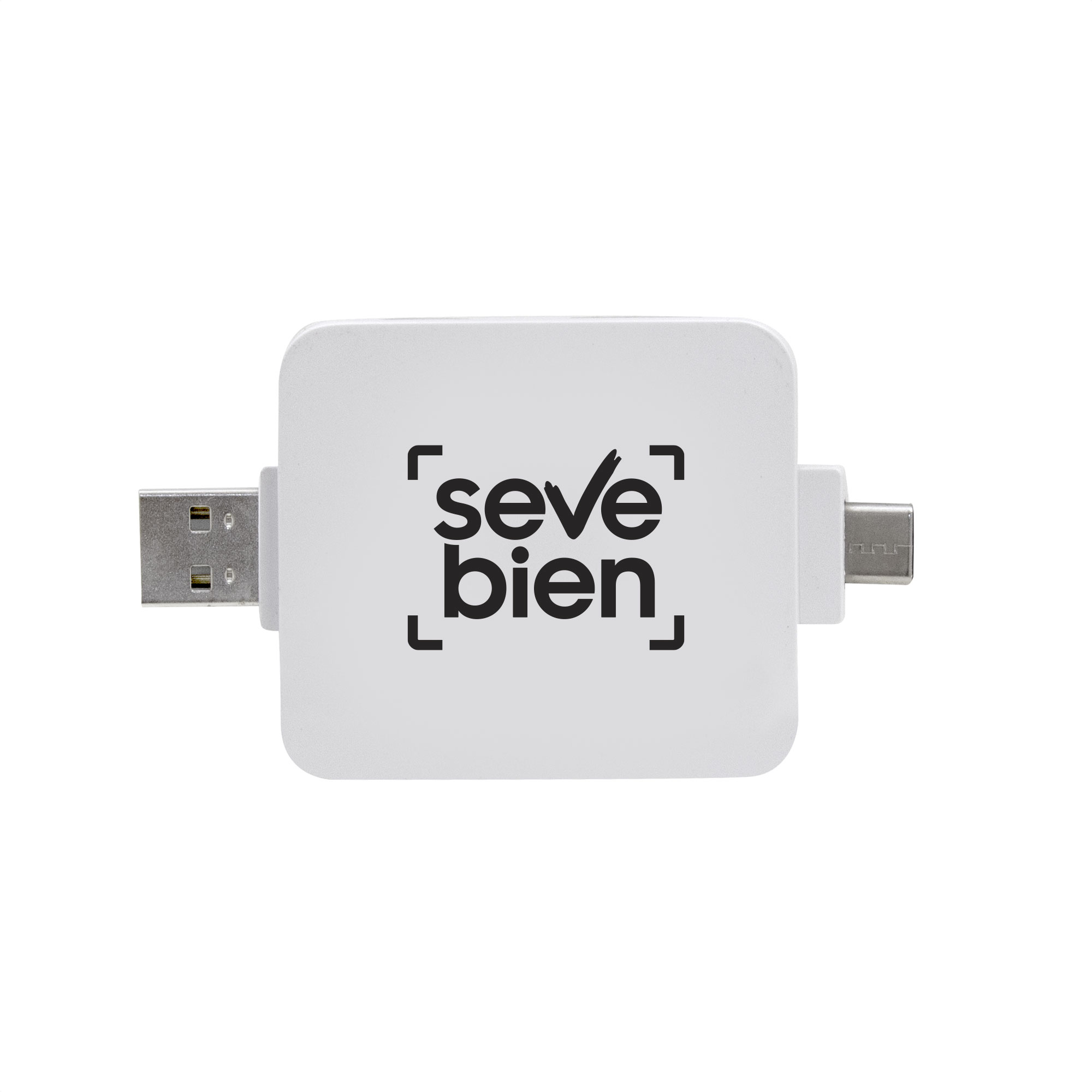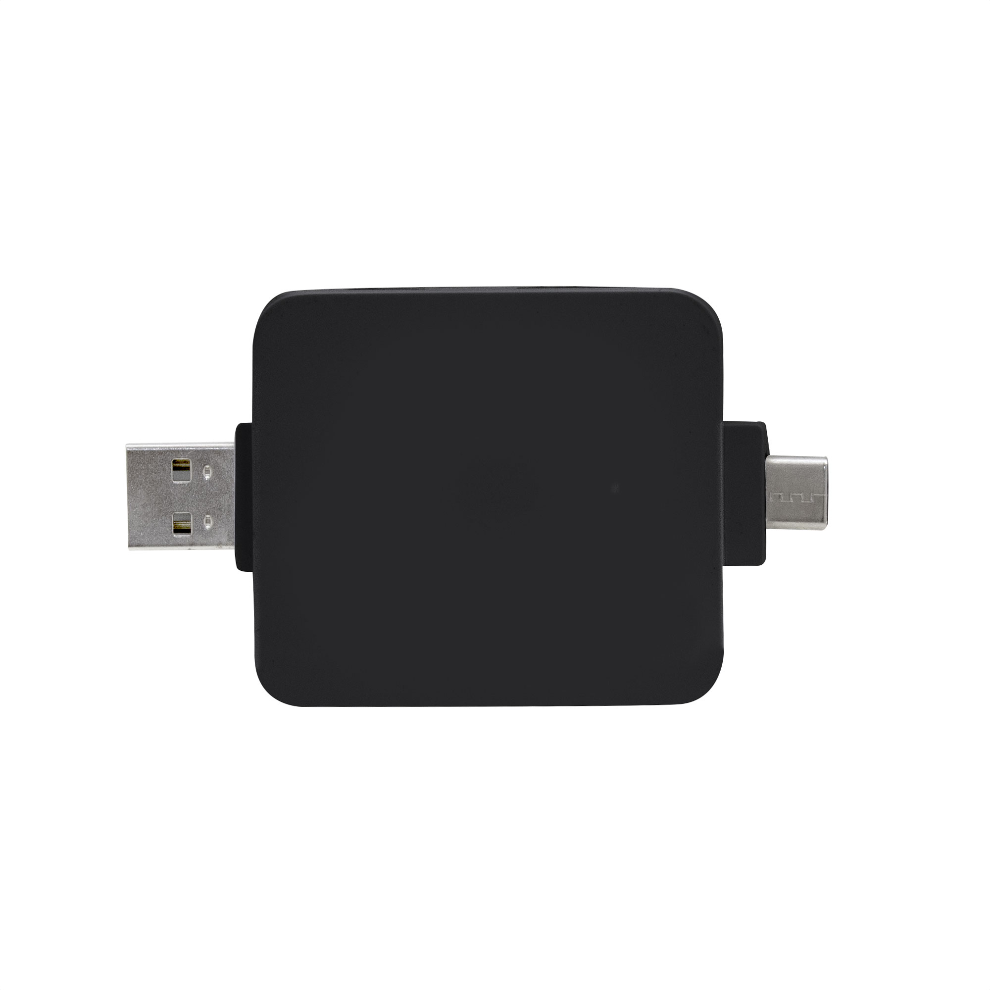 Un solo adaptador, muchas solucionesMini adaptador HUB multipuerto. Entrada: 1 x USB-A / 1 x USB-C. Salida: 2 x USB-A / 2 x USB-C con conectores rebatibles.Medidas: 5,2 x 4,6 x 1,3 cm.