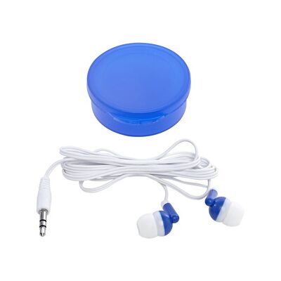 Ø 5 cm. Plástico. Audífonos en estuche circular con auriculares de 117 cm aprox.