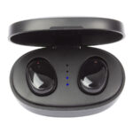 Audífonos Auriculares inalámbricos negros de Alta Fidelidad modelo “Echo”. Cada auricular cuenta con un botón touch que permite subir y bajar el volumen, contestar y finalizar llamadas, reproducir y pausar música. Tienen tecnología Bluetooth 5.0, una duración de batería de aproximadamente 4 horas y un estuche de carga de 200 mAh, el cual se carga a través de un cable USB – Type C. Tiempo de Carga: 2 horas. Diámetro del Mando: 8MM, Sensibilidad: 93+-3dB, Impedancia: 32 Omega, Frecuencia: 20Hz-20KHz, Voltage de la Batería: 3.7V +- 0.5V, Distancia: 10m. Máxima Potencia: 5mW. Presentación en caja de regalo impresa a todo color.