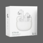 Audífonos auriculares inalámbricos, función Bluetooth Touch ID, puerto Tipo-C, emparejamiento automático, incluye par de protectores de silicona y manual de instrucciones en inglés y español.