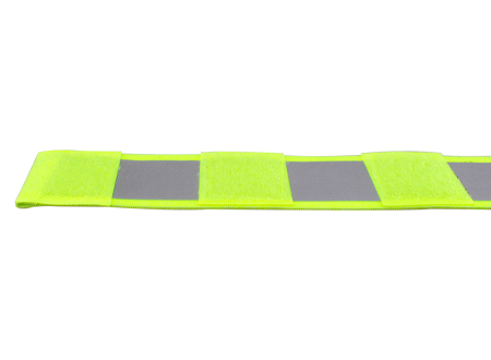 Banda (cinta) elástica reflectante para brazo, con 3 ajustes de velcro. Se puede usar en muñeca, antebrazo o sobre el bíceps. Viene en práctica bolsa de polipropileno con orificio para colgar en ganchera.