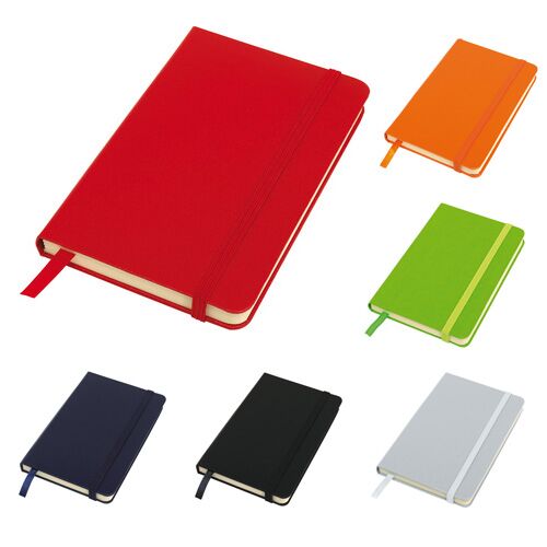 9 x 14 x 1,5 cm Cartón. 80 hojas, 160 páginas. Separador de hojas en tela. Cierre con banda elástica. Posee 80 hojas de color amarillo composición (con líneas)