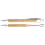 Bolígrafo modelo “Sustenta”. Cuerpo de madera de Bamboo, terminales de plástico PET reciclado. Escritura azul.