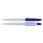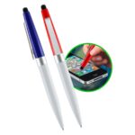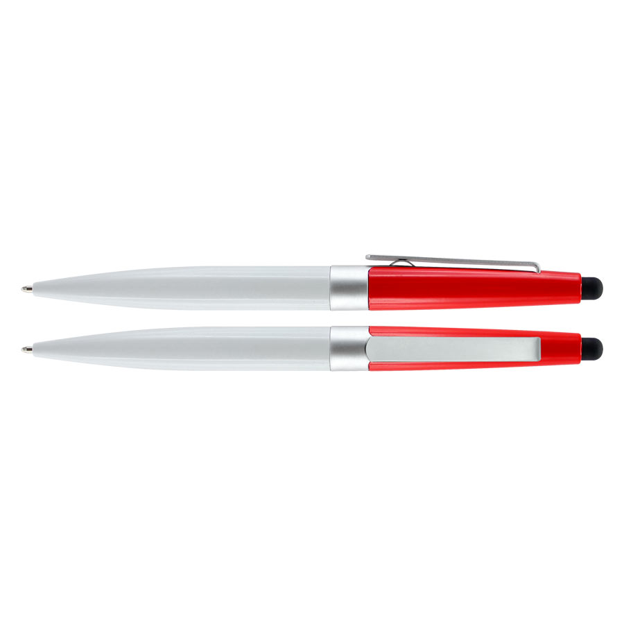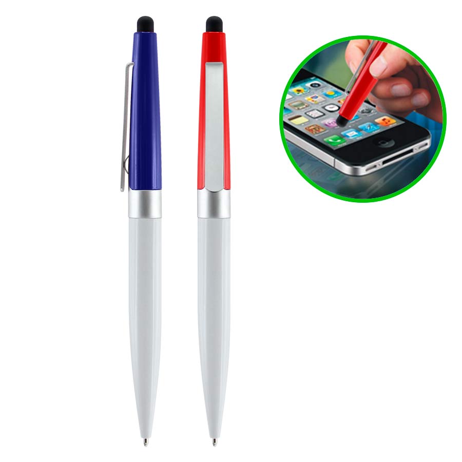 Bolígrafo modelo “Biarritz”, mitad metálico/mitad plástico, incluye puntero Touch-Screen. Escritura negra.