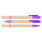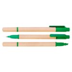 Bolígrafo Ecológico de cartón reciclado con destacador de color. Escritura azul.