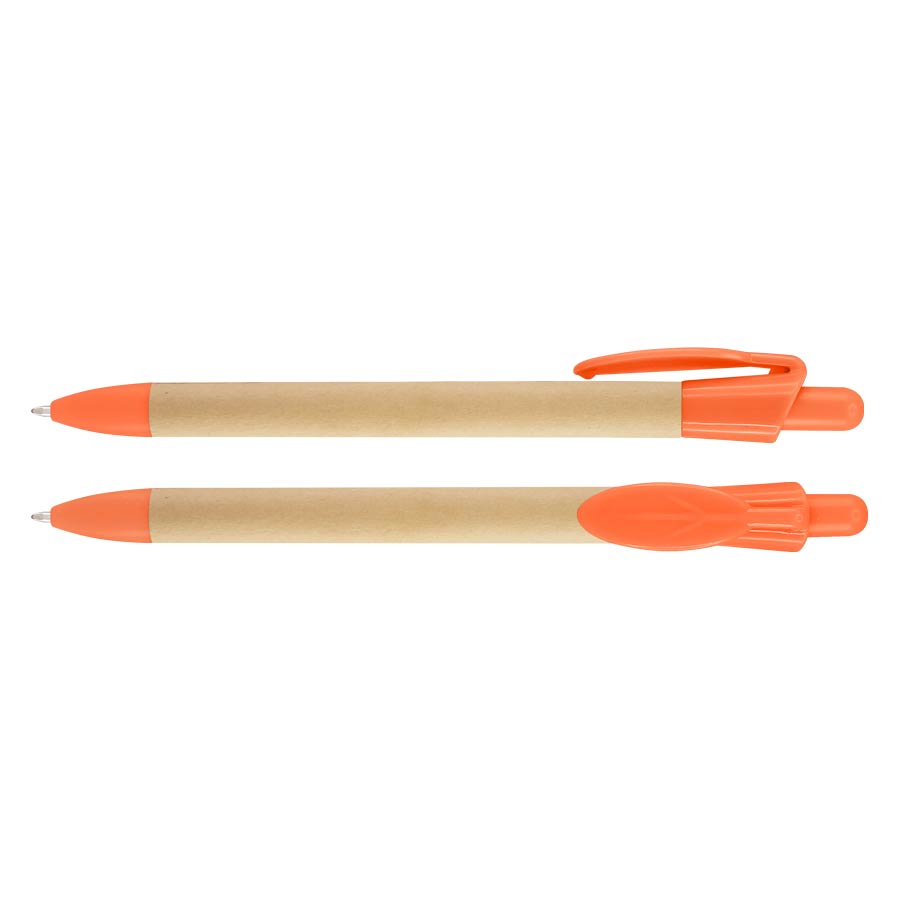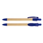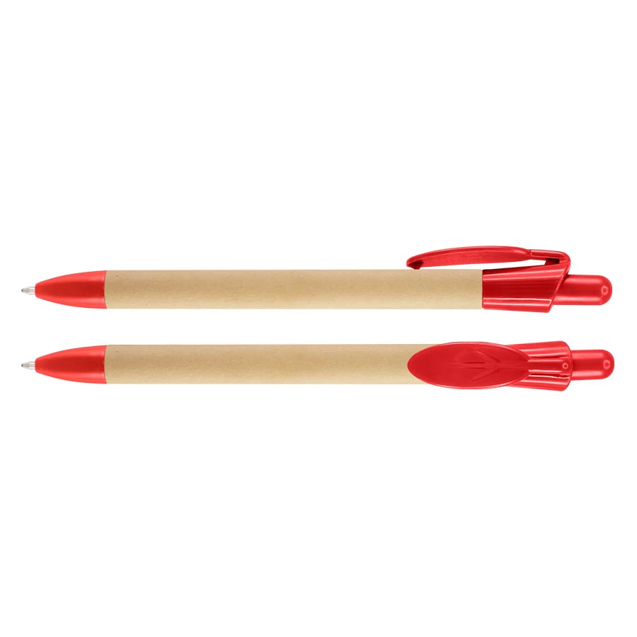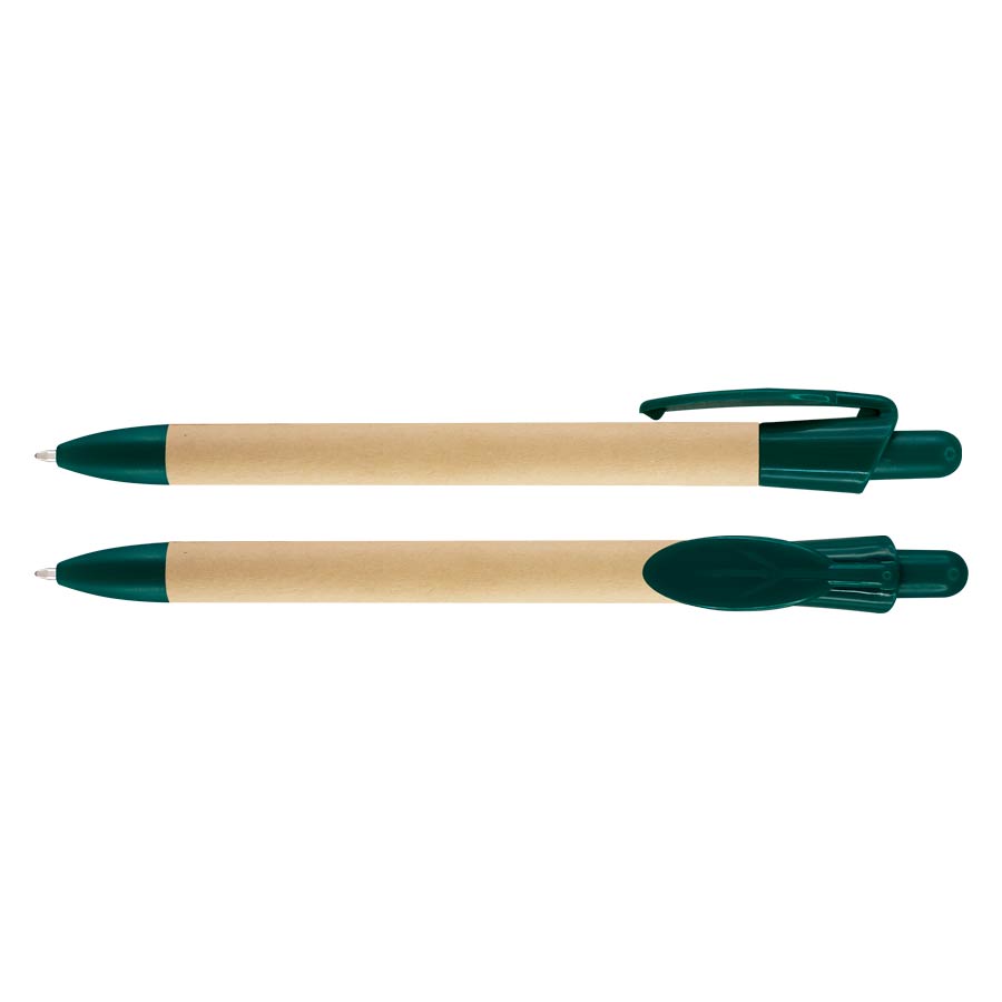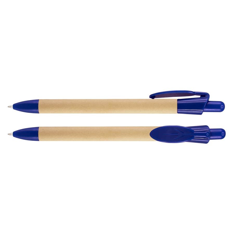 Bolígrafo Ecológico “Leave” con cuerpo de cartón reciclado y clip plástico PET biodegradable con forma de hoja. Escritura azul.