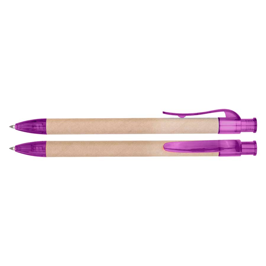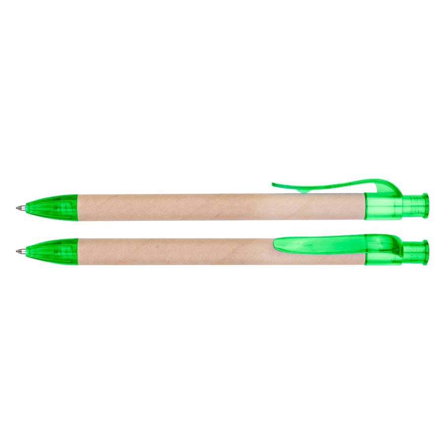Bolígrafo Ecológico “Planet” de cartón reciclado, con terminales de color traslúcido. Escritura azul.