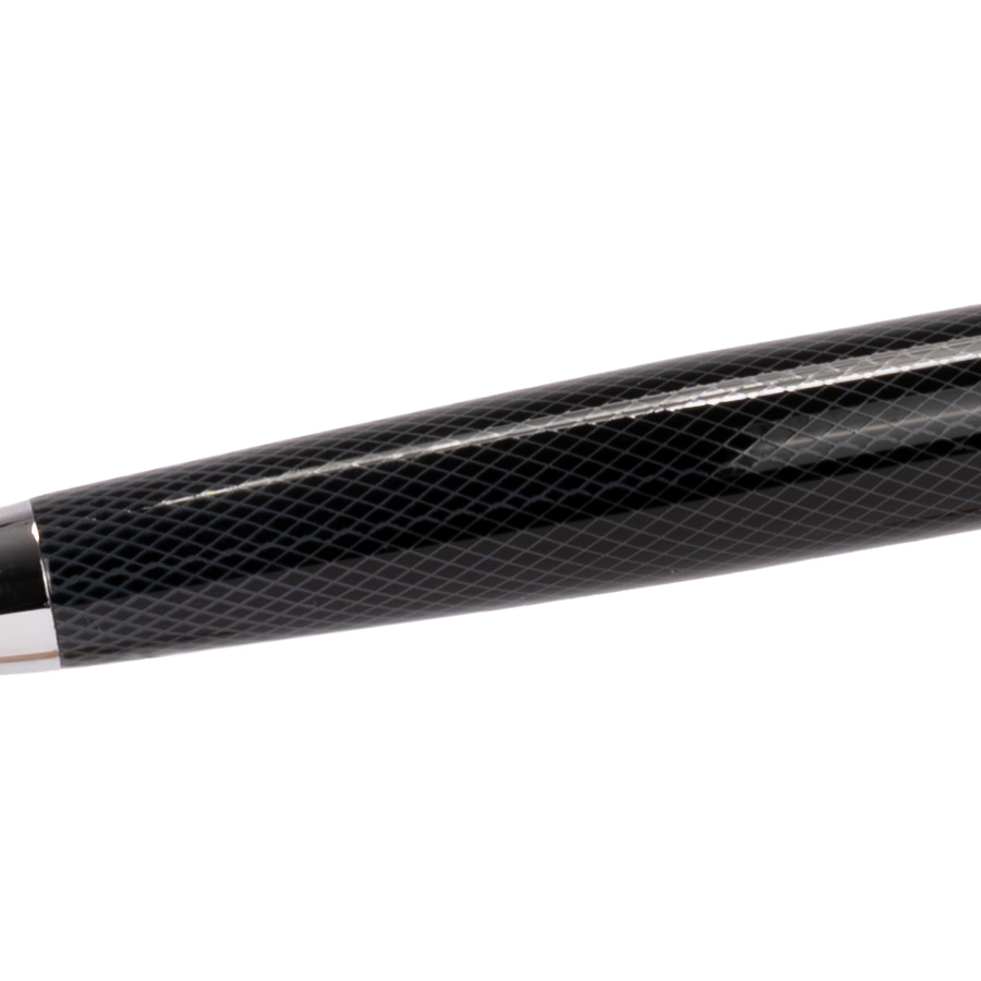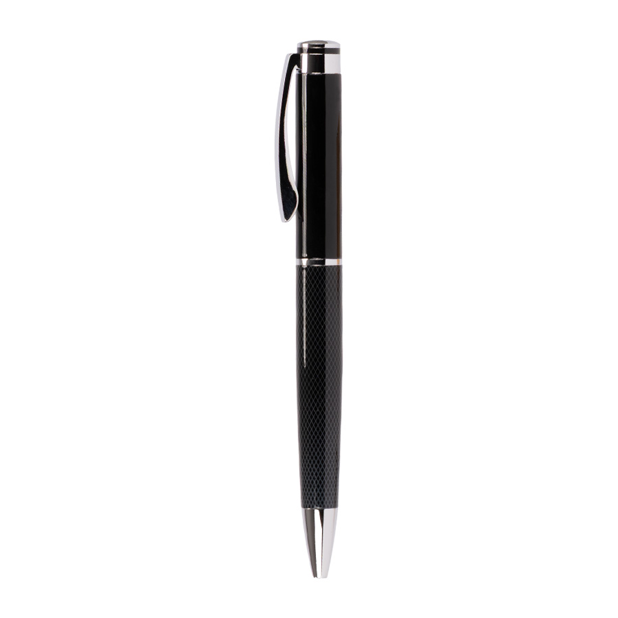 Bolígrafo ejecutivo “DARK”, escritura negra. Presentación en elegante estuche de PU negro con costura, interior cuna aterciopelada blanca. Sobre funda de papel color negro.