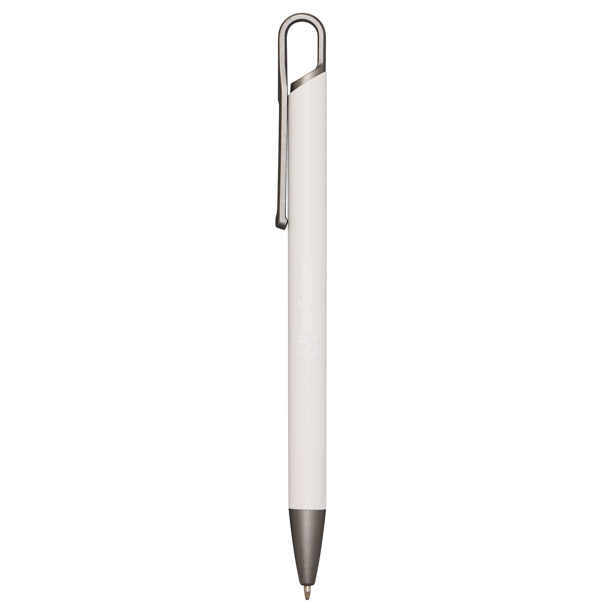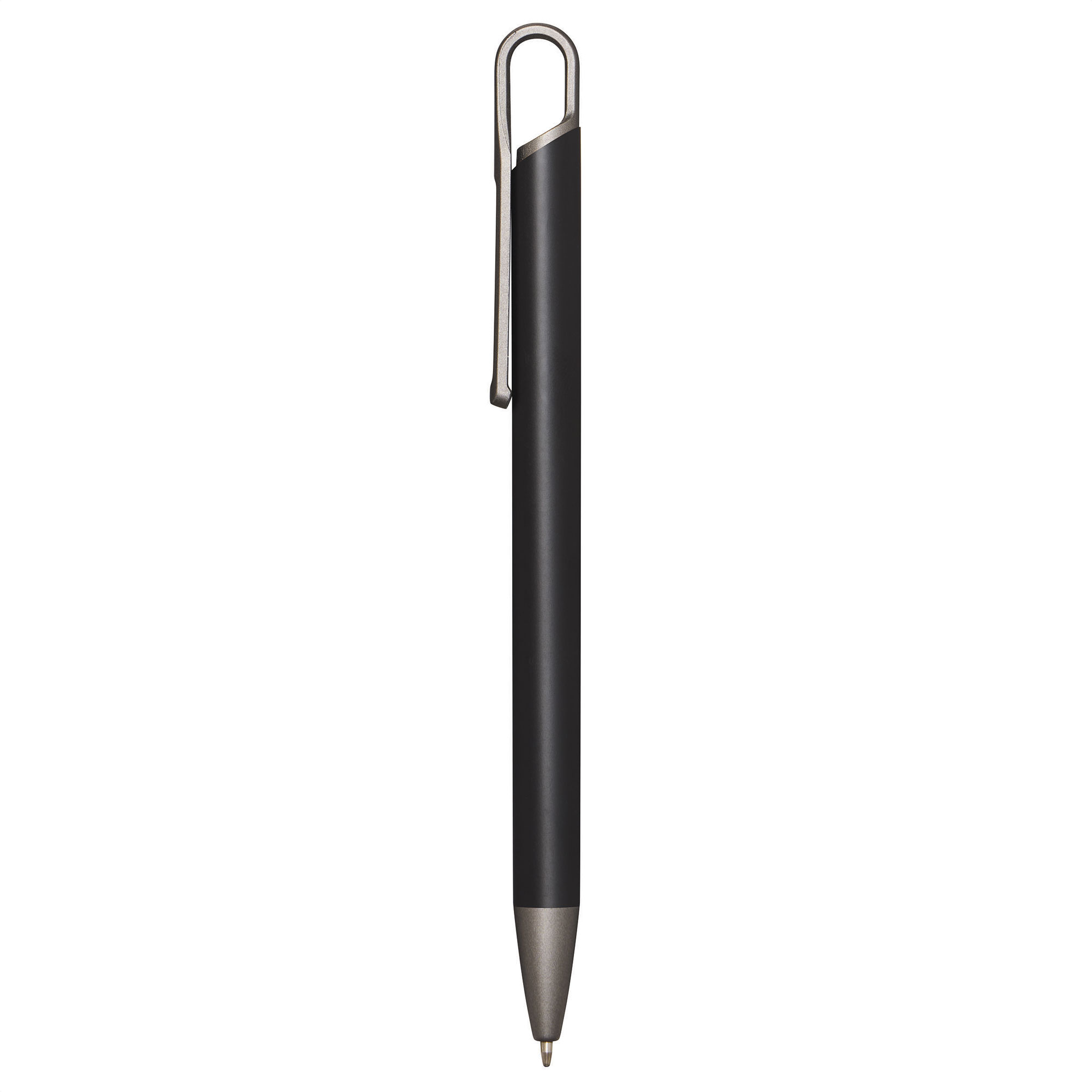 Un clásico renovado.Boligrafo retráctil. Cuerpo metálico en diferentes colores. Acabado mate. Clip pulsador y puntera de color gris gun metal. Medidas: 14 cm.