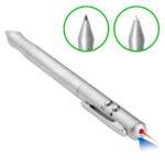 Bolígrafo metálico multi-función 4 en 1. Incluye bolígrafo, linterna LED, puntero láser y puntero PDA (Palm). Presentación en estuche de aluminio. Escritura Azul.