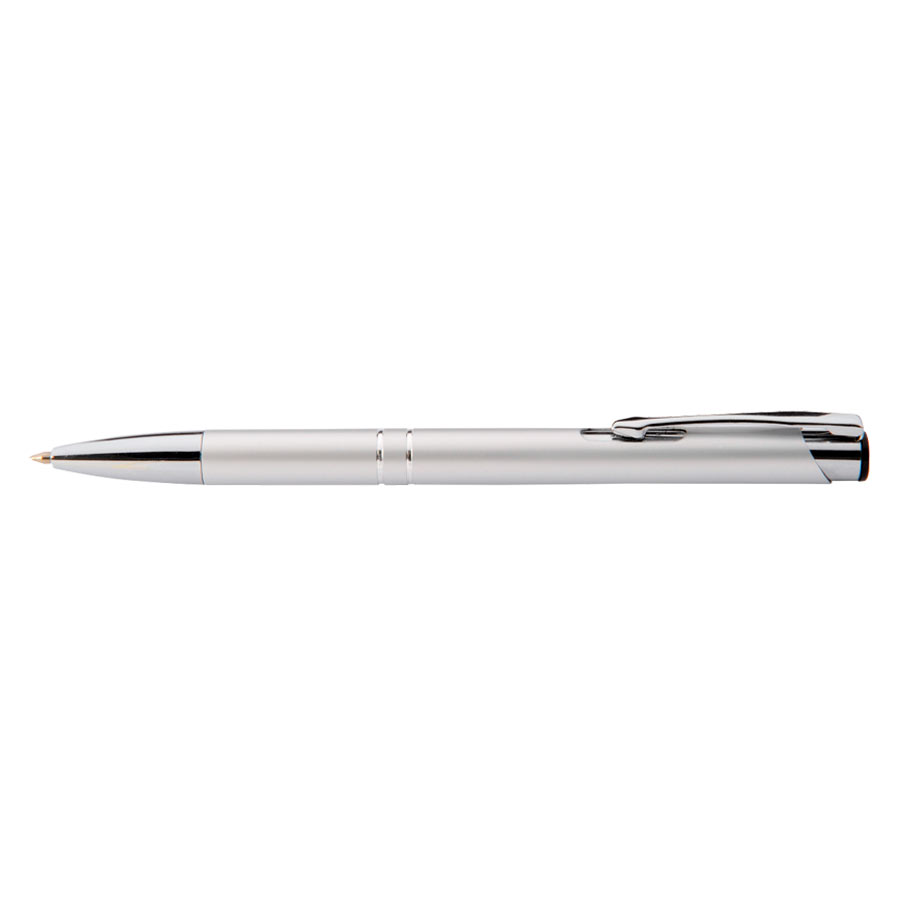 Bolígrafo de Aluminio modelo “Arrow”, con terminales cromados. Refill plástico parker type. Escritura azul.
