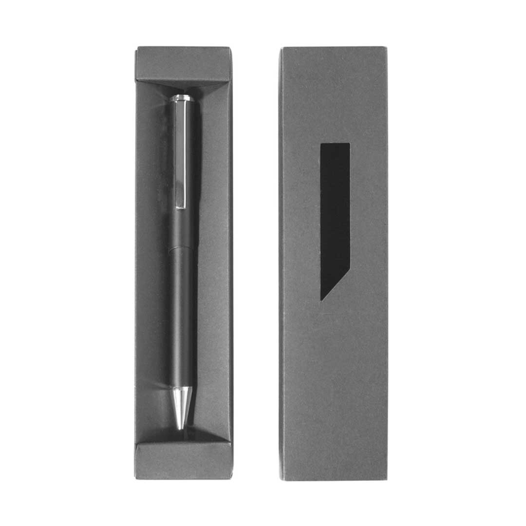 Acero inoxidable. Boligrafo rollerball. Cuerpo laqueado negro mate. Clip y puntera color plata.