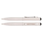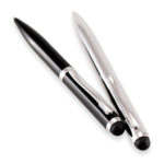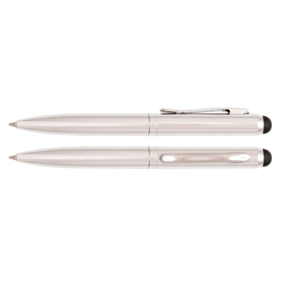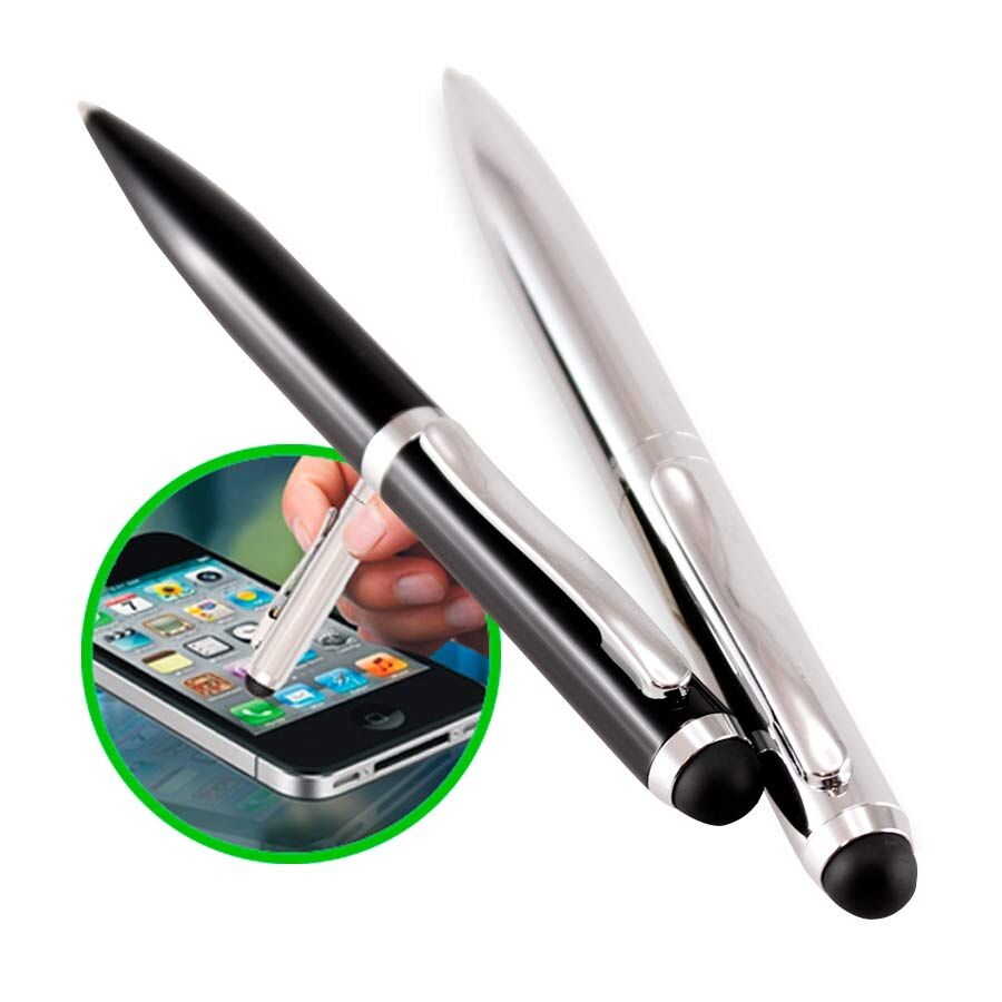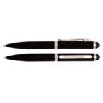 Bolígrafo Metálico modelo “Hotel”, con goma posterior negra “Touch-Screen” para pantalla táctil. Escritura negra.