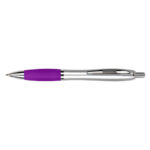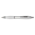 Bolígrafo plástico plateado con goma de color, modelo “Wind Satin”. Escritura Azul. El Bolígrafo más famoso del mundo.