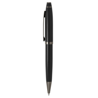 Elegancia y sostenibilidad. Bolígrafo retráctil. Cuerpo metálico en diferentes colores acabado mate. Clip metálico y puntera plástica color gris acabado mate. Pulsador de bambú.Medidas: 14 cm.