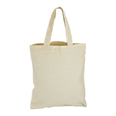 Bolsa 100% Algodón natural de 150g/m2, modelo “India”. Manillas de Algodón natural de 35 x 2.5 cm. aprox. c/u.