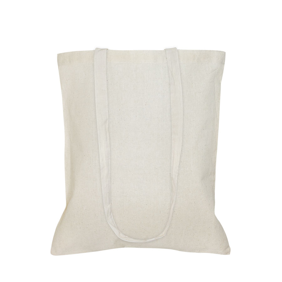 Bolsa 100% Algodón natural de 130g/m2, modelo “India”. Manillas de Algodón natural de 80 x 2.5 cm. aprox. c/u.