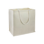 Bolsa de Canvas Algodón natural de 10 onzas, modelo “Nepal”. Manillas redondas de Algodón natural de 60 x 2.5 cm. aprox. c/u. Cierre velcro interior.