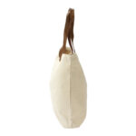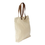 Bolsa de Compras con asas de cuero, en tela Canvas Algodón laminado natural de 10oz. (280 g/m2). Contiene doble manilla de Cuero natural, 8 remaches color bronce envejecuido y cierre interior imantado.