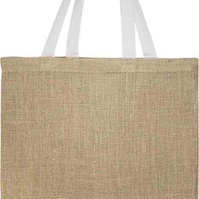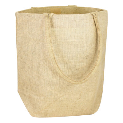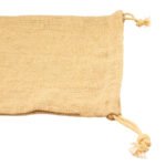 Bolsa de Yute tipo saco de 30 x 40 cm, sin recubrimiento laminado interior. Cuenta con asa-cordón retraíble de yute, en la parte superior de la bolsa.