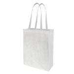 Bolsa reutilizable de Tela No Tejida (TNT) de 80 g/m2. Incluye gráfica termolaminada de Bandera chilena por el anverso y por el reverso es 100% blanca, ideal para impresión de logo. Cuenta con 2 asas de 60cm. c/u aprox.