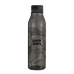 Única en su estilo.Botella de plástico color negro con tapa a rosca color negro mate con anillo de silicona de diferentes colores.Medidas: Ø 7 x 24,5 cm.