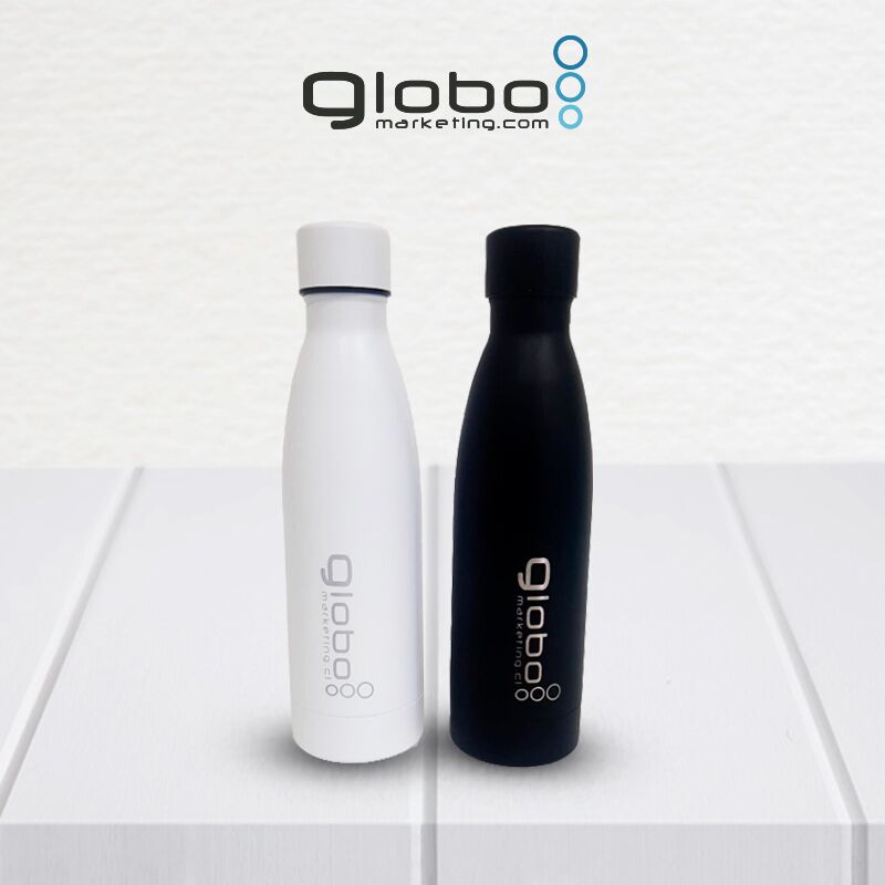 Botella reutilizable de doble pared de acero inoxidable, esmaltado en su exterior con Powder Coating. Es ideal para mantener la temperatura de la bebida: mantiene 4 horas la bebida caliente y 8 horas la bebida fría.