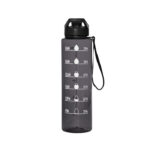 Botella deportiva motivacional. Botella de color translúcido con tapa plástica flip top con asa, boquilla y correa del mismo color de la botella.