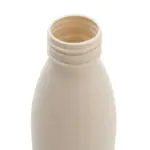 Botella confeccionada en PE (polietileno), wheat straw, pasta de tallo de trigo, un material sustentable que reduce el consumo de plásticos vírgenes, y acero inoxidable en su base y tapa, ofrece una alternativa resistente y ecológica para el día a día.
