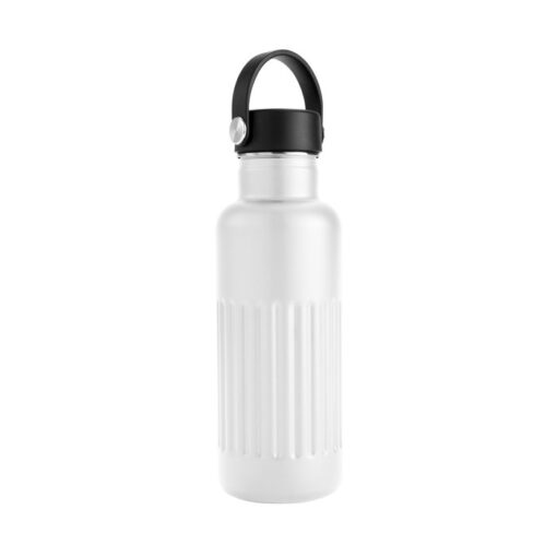 Botella doble pared, sellada al vacío. Botella con aislamiento térmico. Tecnología vacuum. Interior de acero 304 reciclado y exterior de acero 201. Tapa a rosca de polipropileno, interior plástico. Asa reforzada de silicona. Pintura acabado semi mate. Cuerpo texturado para un mejor agarre. Mantiene hasta 12 hs la temperatura de las bebidas calientes y 24 hs de las bebidas frías.