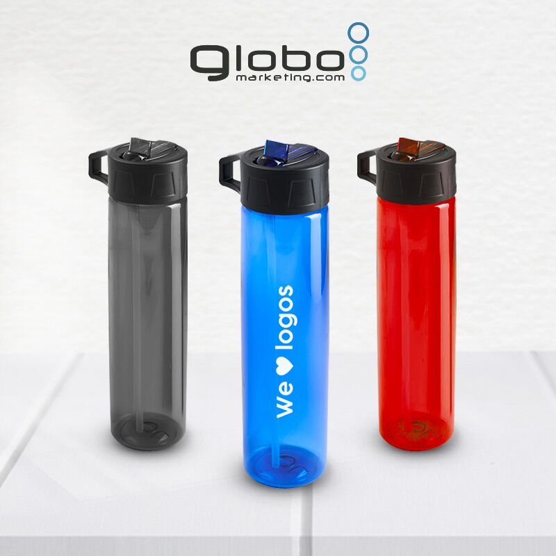 Botella de PP y PC, con boquilla vertedora ideal para ir al deporte. Cuenta con un agarre en la tapa, para facilitar su transporte. Capacidad: 750 mL. Medidas : 27 x 6,6 cm. El producto se presenta en una bolsa de PLA 100% biodegradable.