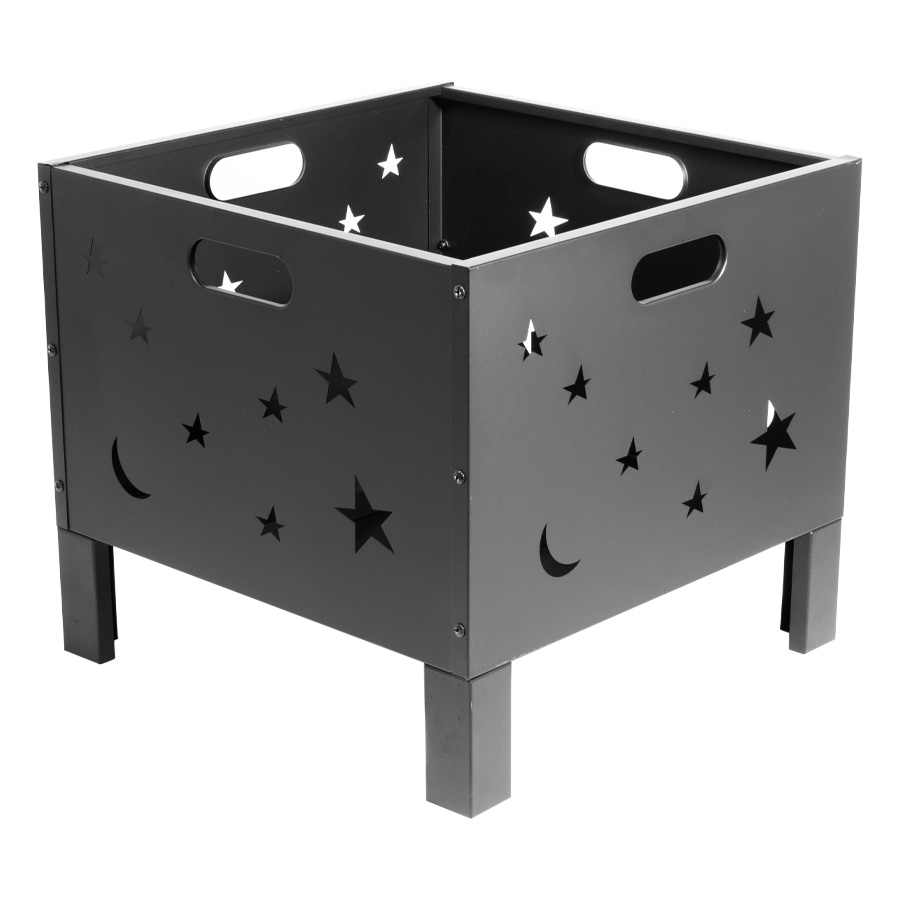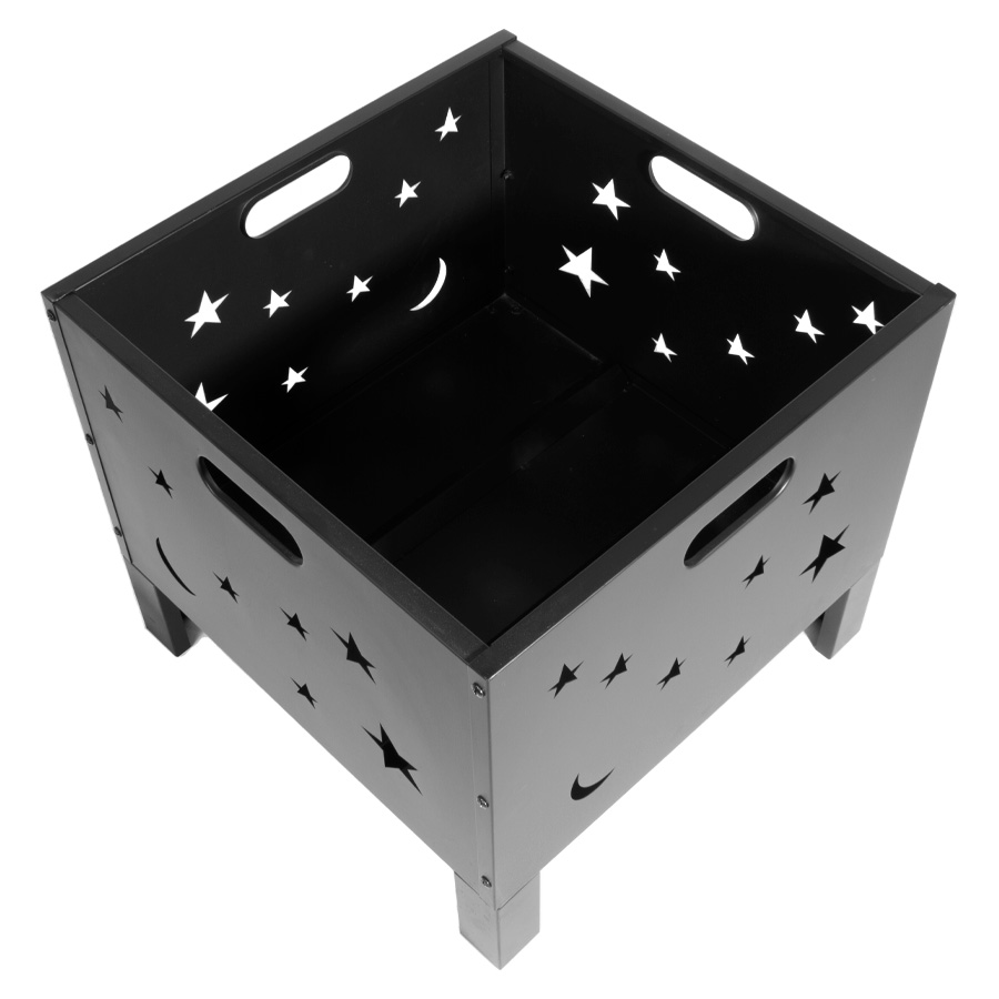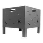 Brasero para Leña o Carbón, de Acero negro, modelo “Constelación”. Bowl para fuego: 50 x 50 x 33cm x 10.6mm. Fácil de armar y transportar. Incluye Manual instructivo de armado en español.