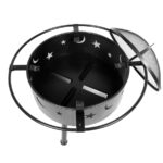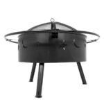 Brasero / Parrilla para Carbón o Leña, de Acero negro, modelo “Centauro”. Altura para cocinar: 44cm. Rejilla cromada para cocinar: D50 x 4mm. Tubo exterior: D82cm x 14mm. Tapa con rejilla: D56.5 x 14.5cm. Bowl para fuego: D61 x 22cm x 0.8mm. 3 patas de 25cm x 30mm. Mango removedor de carbón de Regalo. Incluye Manual instructivo de armado en español.