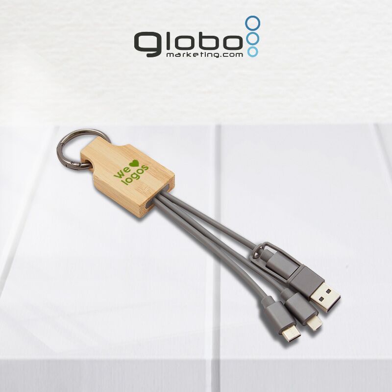 Descripción general del producto: Cable 3 en 1 color gris, con una longitud de 12 cm. Es el accesorio perfecto para mantener tus dispositivos siempre cargados y listos para usar. Incluye cable de entrada TIPO C con adaptador USB A y 2 cables de salida MICRO B / LIGHTING, lo que te permite cargar dispositivos con diferentes tipos de entradas. Cuenta con un accesorio rectangular de bamboo de donde salen los cables y un gancho de aluminio en tono con los cables. ReUseMe.