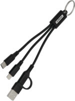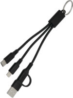 Cable de carga con llavero. Entrada: 2 en 1 (USB + USB tipo C). Salida: USB tipo C + lightning.
