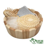 Canasto SPA de belleza en madera modelo “Naturals”. Contiene cepillo de pelo, esponja malla, piedra pomez y esponja de masaje corporal.