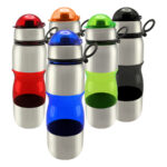 Botella deportiva modelo “Trend”, de Acero Inoxidable con plástico rígido traslúcido. Para líquidos fríos (no térmico).