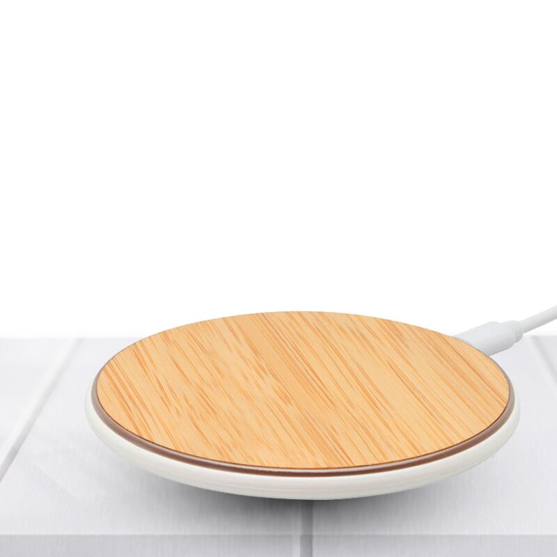 Ø 10 x 0,9 cm. Bambú + Plástico ABS. Cargador inalámbrico.