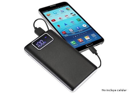 Cargador Power-Bank USB modelo “Saturn” con display-pantalla indicador de porcentaje de carga y Linterna LED. Capacidad 10000mAh. Input: 5V 2.1A / Output: 5V 1A/2.1A. Incluye cable de carga USB/micro USB. Presentación en Estuche de Cartón negro con colgador para ganchera. Tamaño: 6.9 x 12.7 x 1.7 cm.