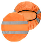 Funda cobertora para Mochila. En tela poliéster 210D/PU impermeable. Incluye 2 bandas reflectantes de 5cm de alto c/u + banda elasticada posterior para ajuste a mochila.