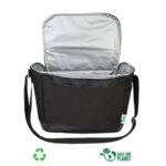 Bolso cooler modelo “Planet” de 7.5 litros de capacidad, fabricado en tela RPET, en base a pellets de botellas plásticas recicladas y poliéster 250D/PVC. Interior térmico aislante de PEVA y acolchado con esponja PE FOAM.