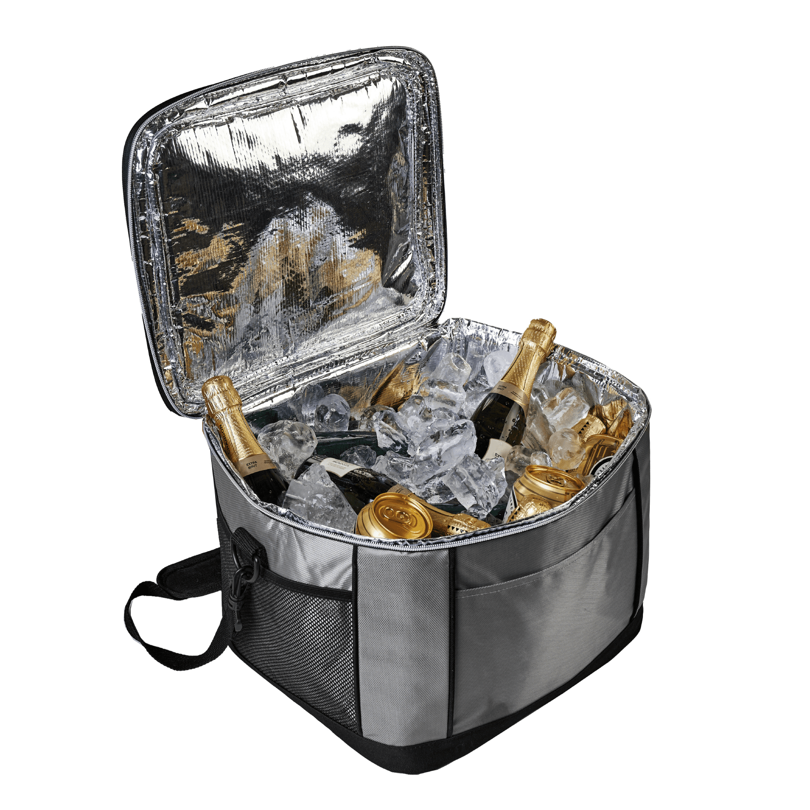 Cooler Wave: práctico y estiloso, perfecto para mantener tus bebidas frías en cualquier evento corporativo. Disponible en múltiples combinaciones de colores. Tamaño: 22 x 27 x 9.5 cm. aprox. Colores: Negro/Azul (02), Negro/Rojo (03), Negro/Naranjo (04), Negro/Amarillo (05), Negro/Verde (06).