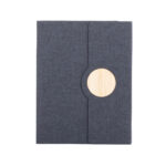 TAHITI es un cuaderno A5 que armoniza la elegancia moderna con un firme compromiso ambiental. Su cubierta de tela Oxford fabricada con botellas plásticas recicladas (RPET) y el delicado detalle de bambú natural en el cierre magnético reflejan una fusión única entre tecnología sostenible y materiales nobles. Sus 80 hojas punteadas en papel marfil de 70 g brindan el espacio ideal para esquemas, ideas y notas organizadas, mientras su cinta marcadora y soporte elástico para bolígrafo añaden funcionalidad al diseño. Disponible en gris o azul, TAHITI representa una nueva forma de regalar utilidad con propósito. El RPET, además de reducir residuos, cuenta con certificación GRS, que garantiza procesos de reciclaje social y ambientalmente responsables. Ideal para marcas que desean escribir una historia alineada con sus valores.