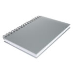 Cuaderno tamaño A5, con tapas de cartón forrado de 650gsm, con 100 hojas blancas con cuadriculado de 5×5 mm. y anillado metálico doble cero.