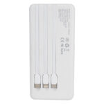 Deluxe cargador Power-Bank USB con pantalla indicador de carga. Capacidad 10000mAh. Amplio espacio para logo. Input: DC 5V 3A / Output: DC 5V 3A. Viene con 3 cables incorporados: micro USB, Tipo C, i-phone. Incluye cable de carga USB / Tipo C. Incluye manual de uso en español e inglés. Presentación en Estuche de cartón forrado color blanco. Producto con Certificaciones.