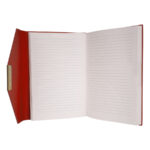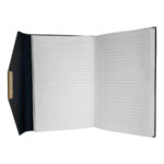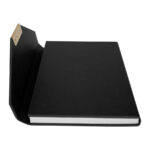 Deluxe Cuaderno tamaño A5 modelo “ENVELOPE”, con tapas duras de cartón forrado en PU eco-cuero, con 80 hojas lineadas blancas. Contiene cierre metálico imantado color dorado.