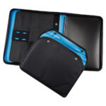 Para el Ejecutivo de hoy. Deluxe Portafolio modelo “President” con Bolso Porta-Tablet removible. Incluye Cuaderno de 50 hojas lineadas, compartimentos para tarjetas, bolígrafo, documentos y celular. Cierre cremallera. Material PU + Polyester 1680D.