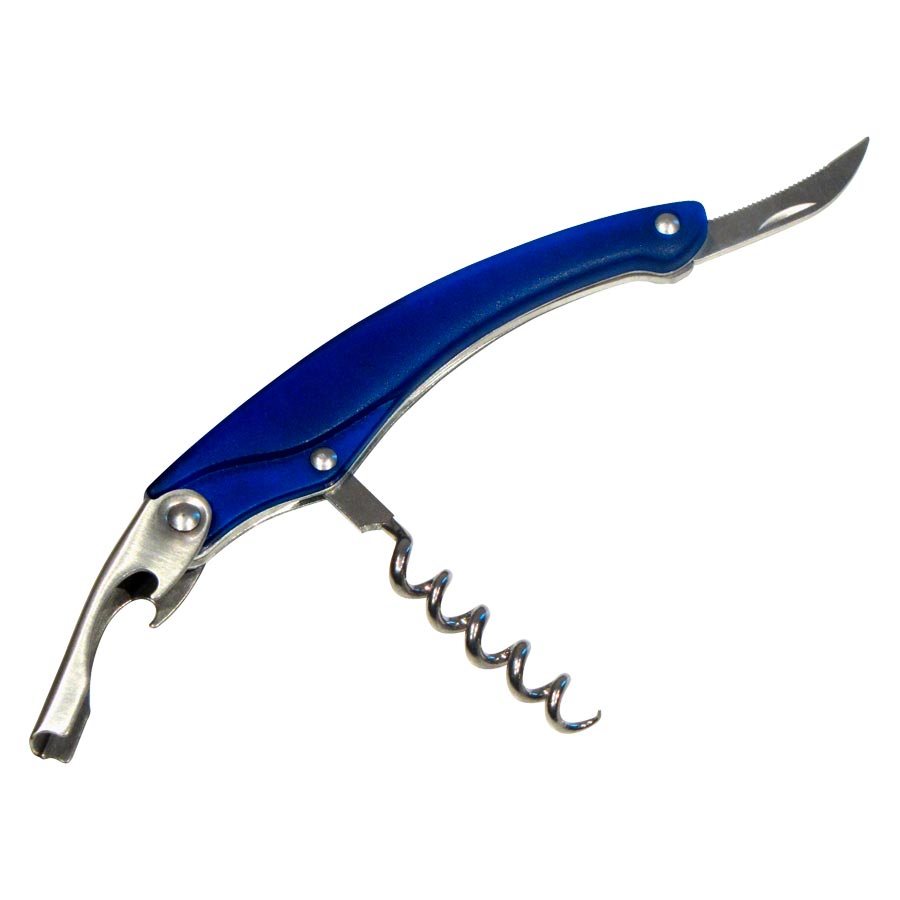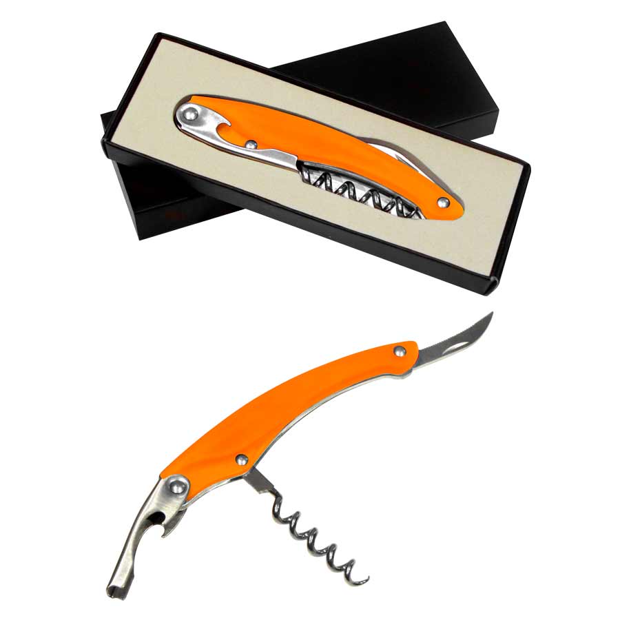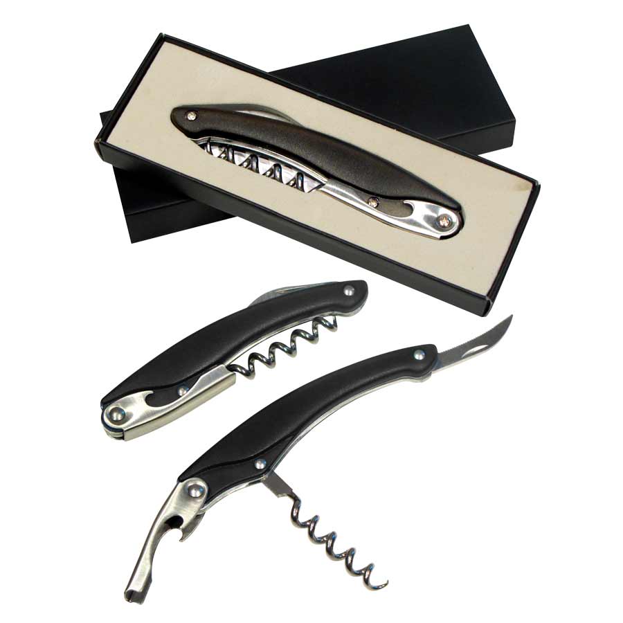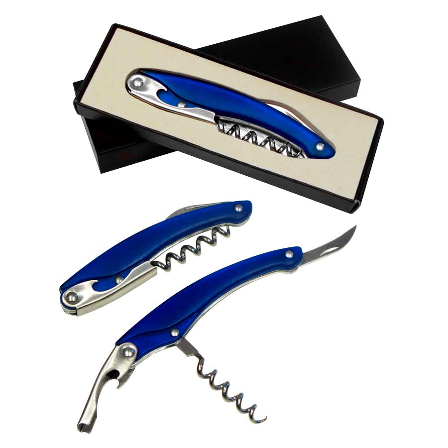Descorchador – destapador – abresellos de Acero Inoxidable con Mango Ergonómico color Frozen. Presentación en caja negra laminada opaca.